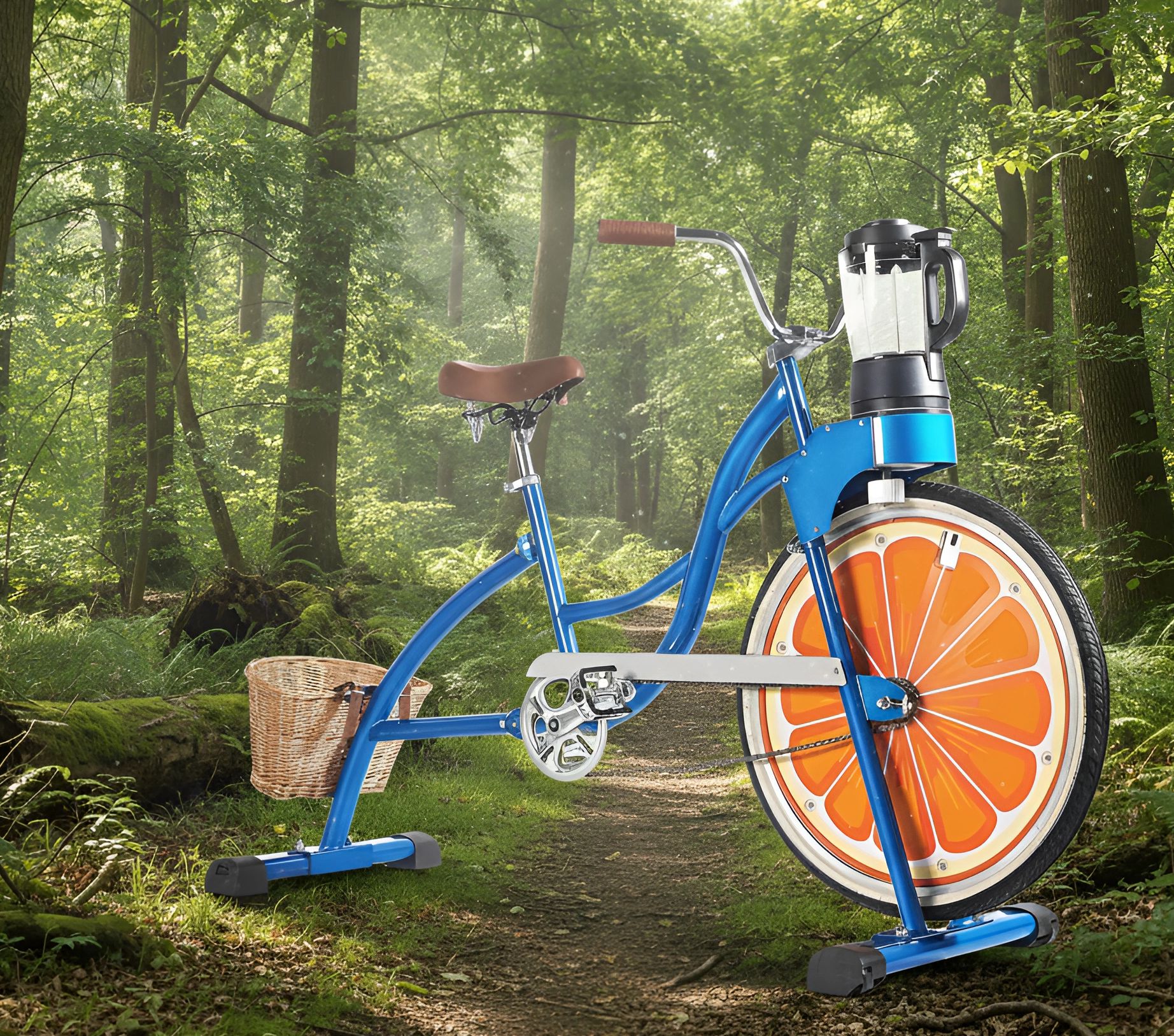 Guests hop on, pedal to power the blender, watch their drink spin to life. (30–45 seconds per smoothie)